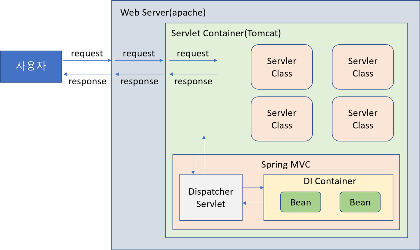 Spring MVC 역시 서블릿 컨테이너가 관리하는 거대한 서블릿이다.
