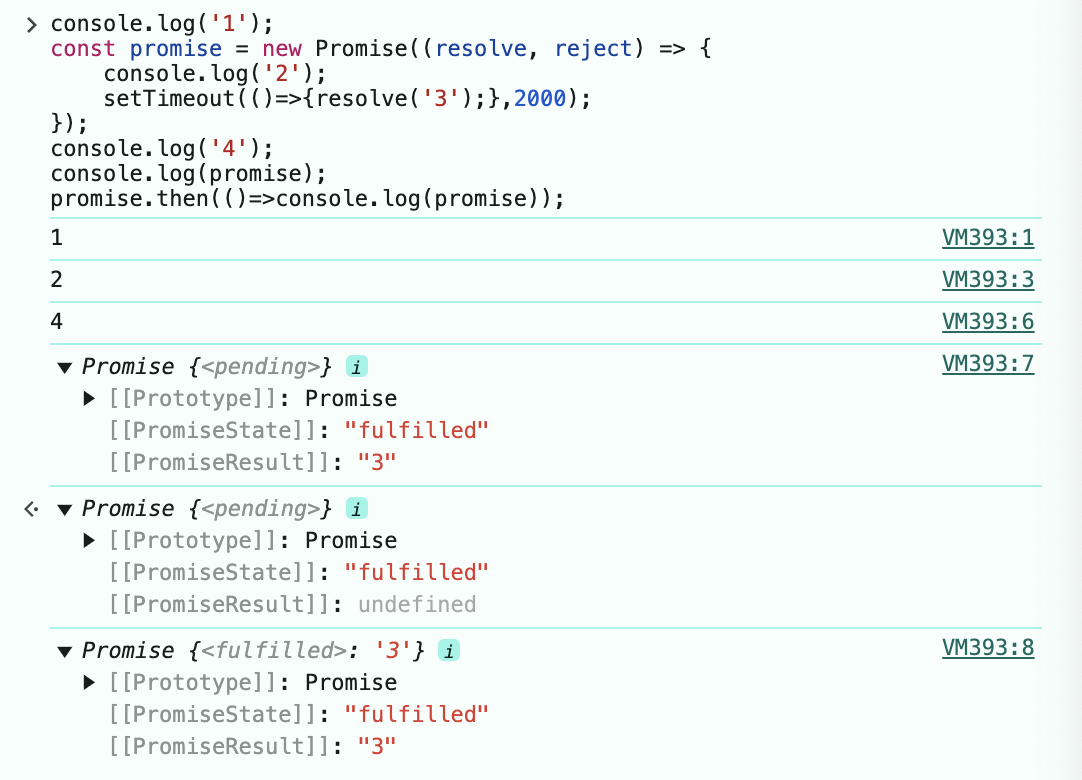 new Promise(()=>{}).then(()=>{}).then(()=>{}).then(console.log)