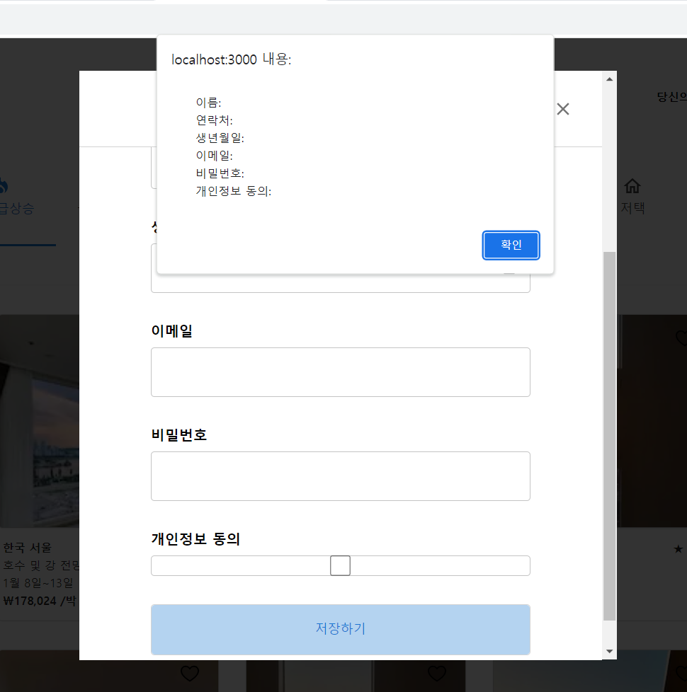 개인정보 동의: ${userData.userCheck}라고만 되어있던 부분에 삼항연산자를 넣어서개인정보 동의: ${userData.userCheck ? "YES" : "NO"}클릭 여부에 따라"YES"와"NO"가 나오도록 코드를 작성하였다.
