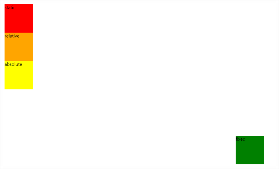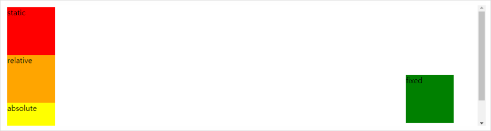 | absolute | 절대좌표로 위치 지정 | 원하는 위치를 지정하여 배치할 때 사용한다. |