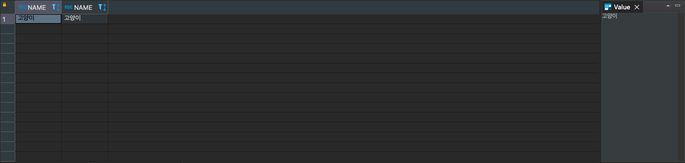 그리고 이 가상의 테이블 TABLE1에서 필요한 값을 조회한다.
