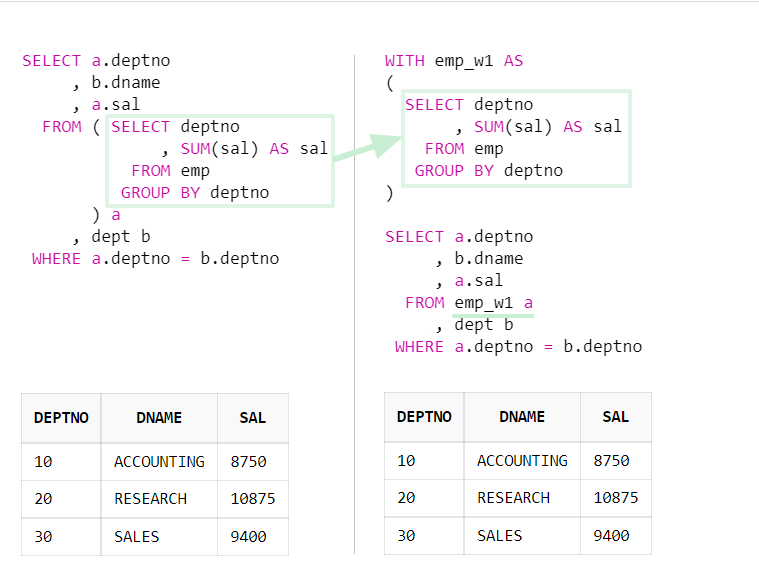 Oracle의 WITH절은 Oracle 9 버전부터 도입된 기능