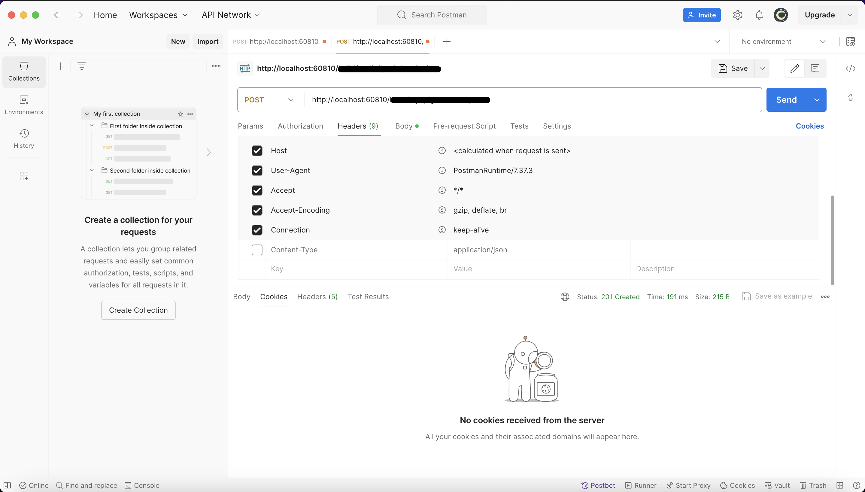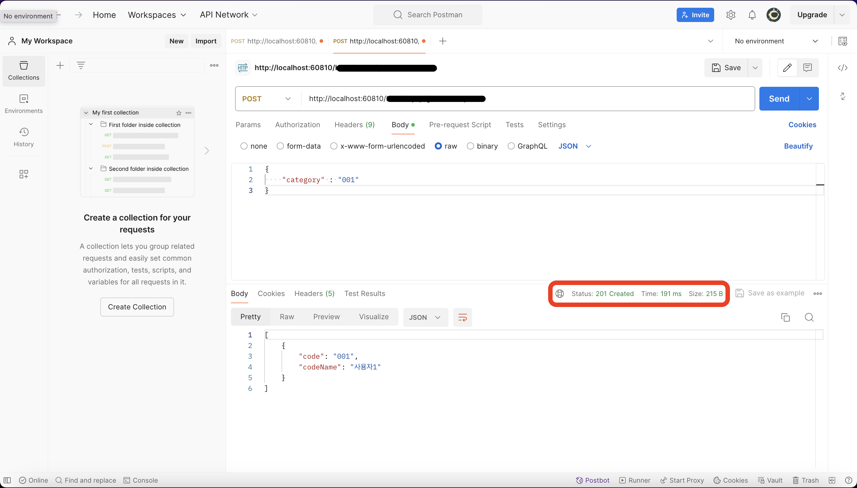 - 201 : 요청이 성공적으로 완료돼 새로운 자원이 생성됐음