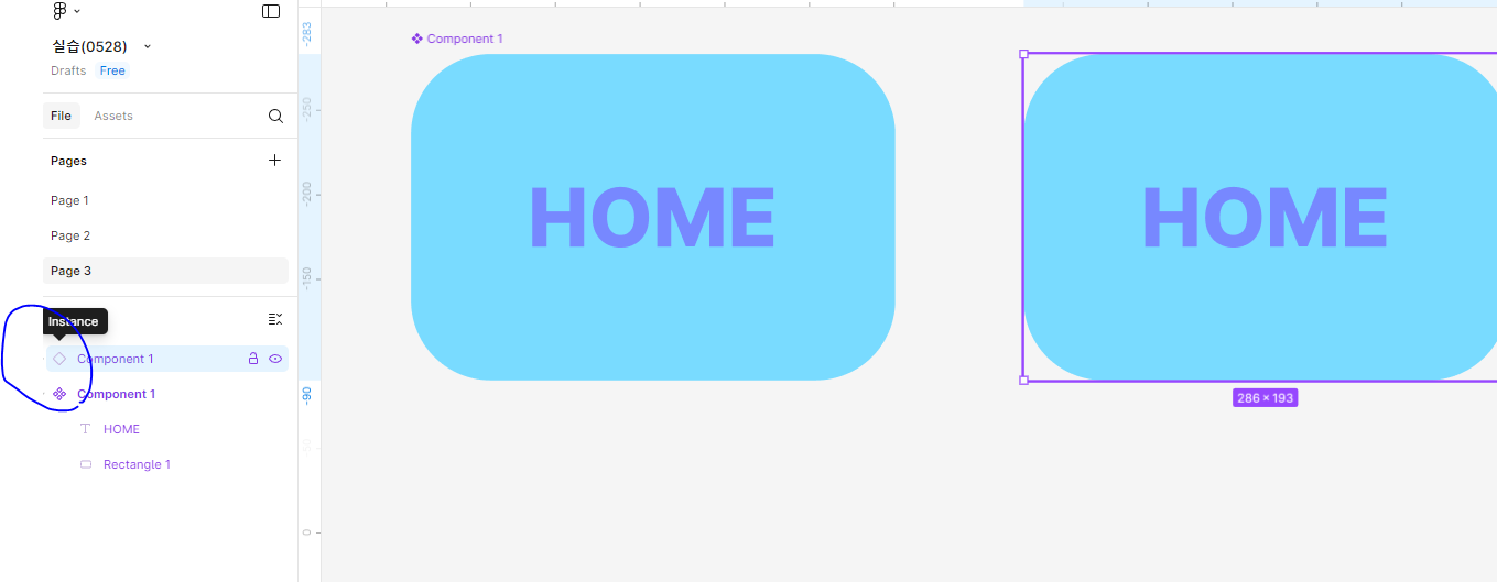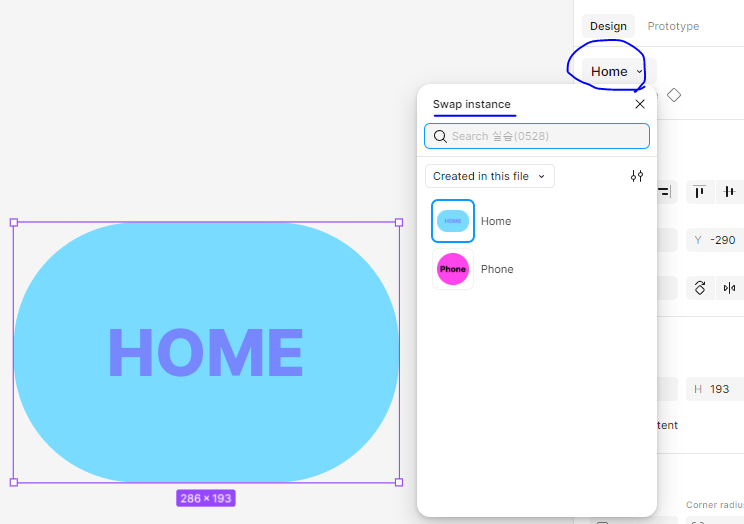 복제된 인스턴스는 색상,글자,전체크기 변경 가능. 다만 컴포넌트간 위치를 조정하거나 그런건 메인컴포넌트로 가서 해야함.