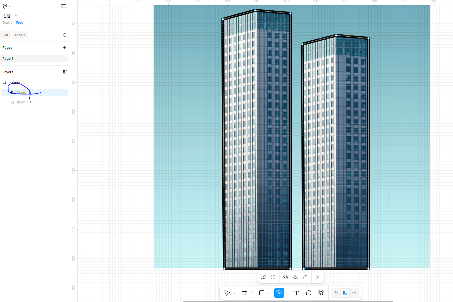 건물두개만 보이게하고 뒤의 배경은가릴것임 .건물두개만 선택하게 건물만 보이게 키우기
