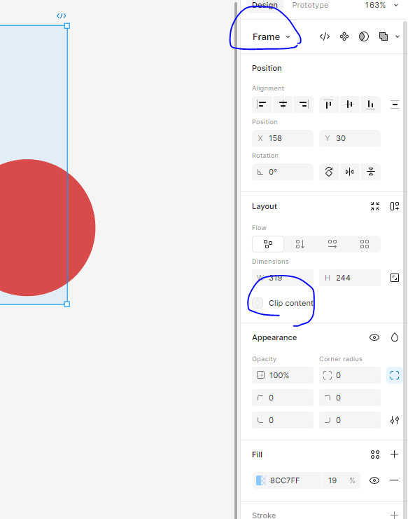 오브젝트가 아니라 프레임을 선택한 후 클립 콘텐츠 체크풀면 영역밖도 보임