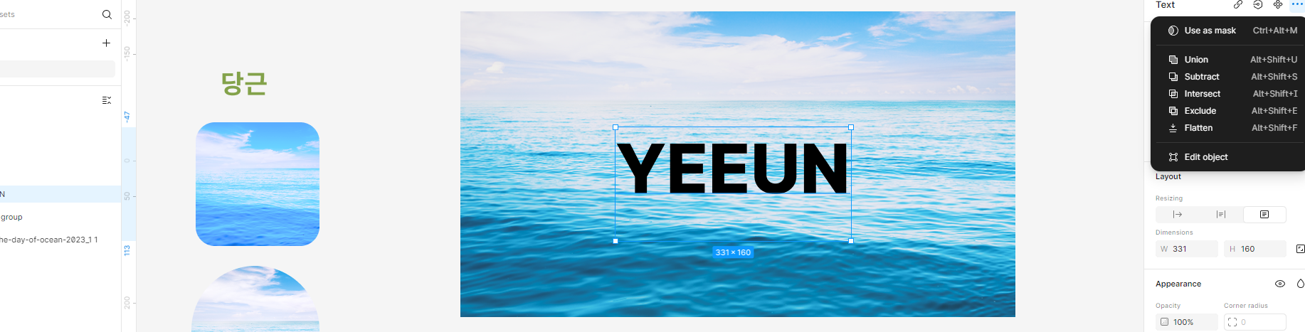 마스크레이어 선택된 상태에서 디자인패널의 벡터패스 마스크 적용하기 (Use as mask)