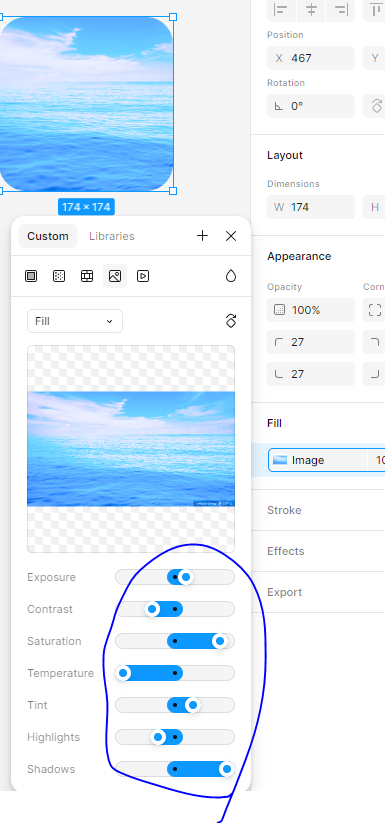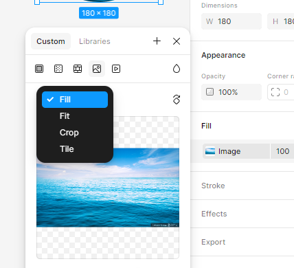 필,핏(도형안에 전체이미지 들어가려해서 잘림),크롭(이동해서 보일구역 수정가능/시프트잡고 비율늘릴수도 있음),타일(몇프로할지선택가능)