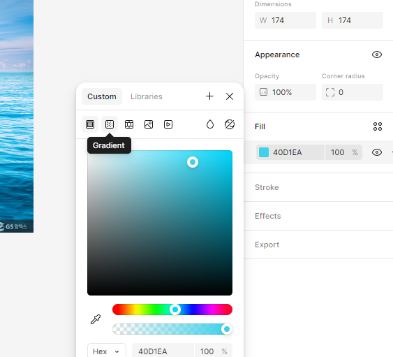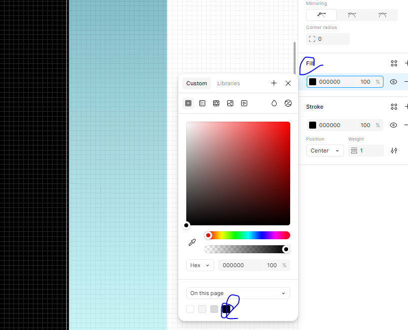 디자인패널에 필에 검정선택