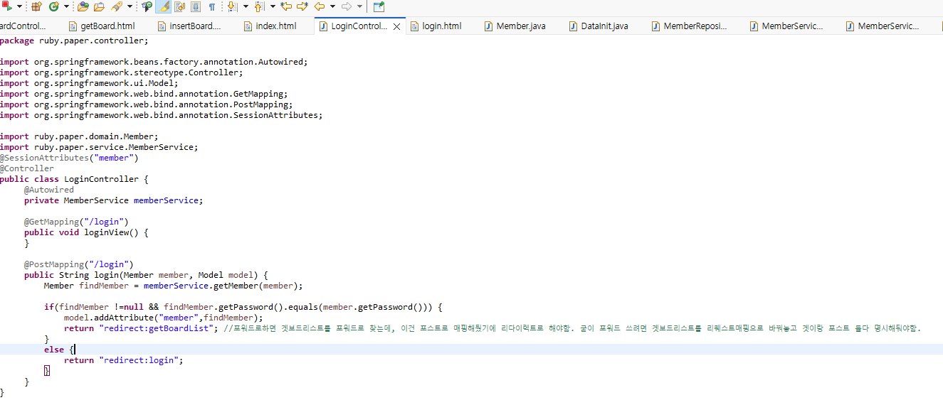 @SessionAttributes("member") // 로그인 정보를 세션에 저장