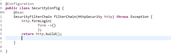 즉, 로그인 페이지도 더 이상 자동으로 제공되지 않음. 기본필터를 제외하곤 내가 등록해서 써야되므로 , 로그인페이지가 이젠 안뜸. 이미 만들어진 로그인 페이지 ( 아까 유저네임패스워드어뗀티케이션이 제공해준)를 쓰고싶다면