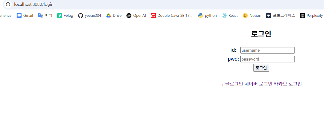 http://localhost:8080/login 들어가서 oauth 로그인 ( 구글로그인이나)