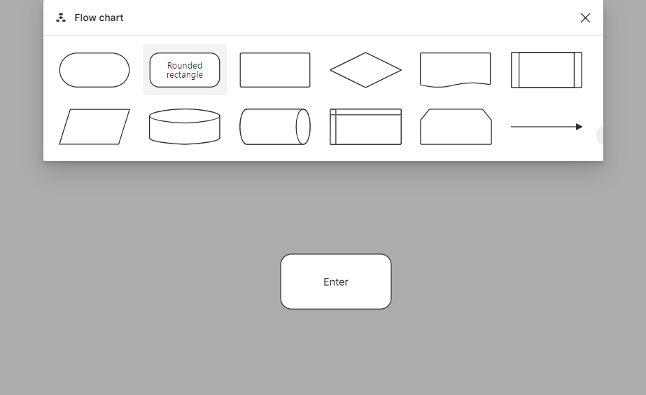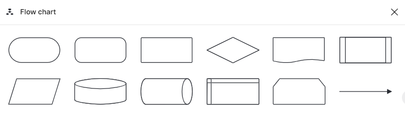 2. Flow chart를 눌러 실행하면 캔버스에 도형을 선택할 수 있는 창이 뜬다.