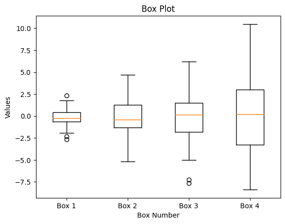 plt.boxplot(data_boxplot, labels=['Box 1, 'Box 2', 'Box 3', 'Box 4'])