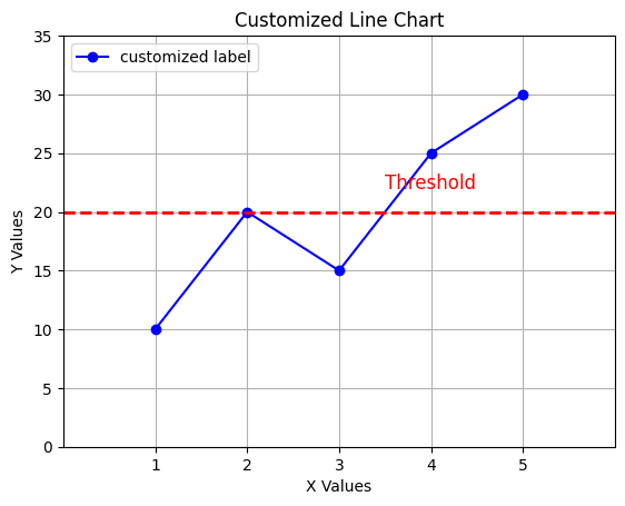 plt.text(3.5, 22, 'Threshold', color='red', fontsize=12)