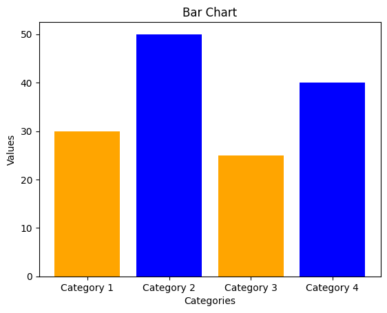 color = ['blue' if value > 30 else 'orange' for value in values]
