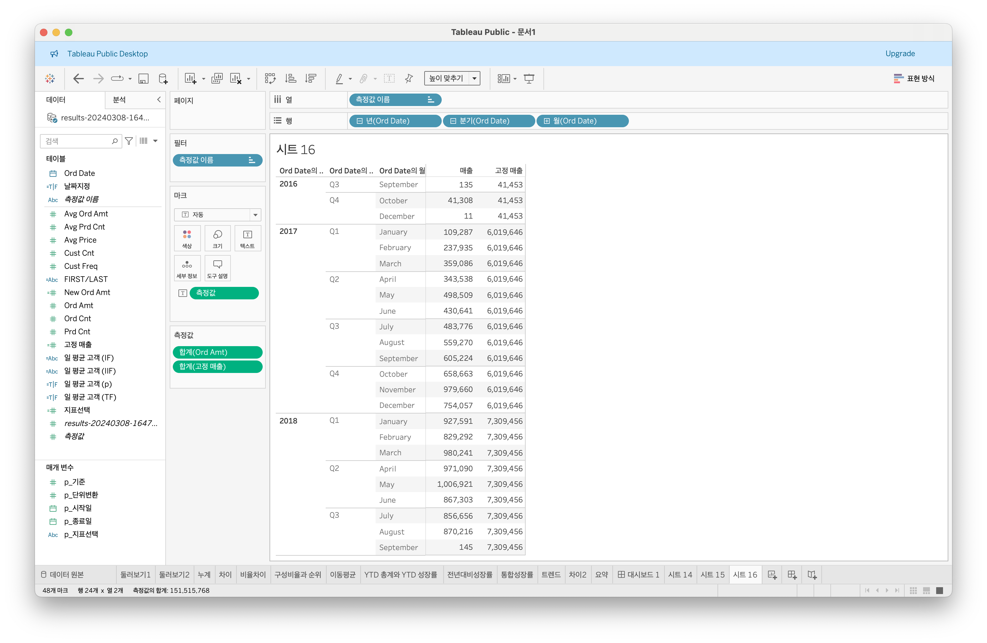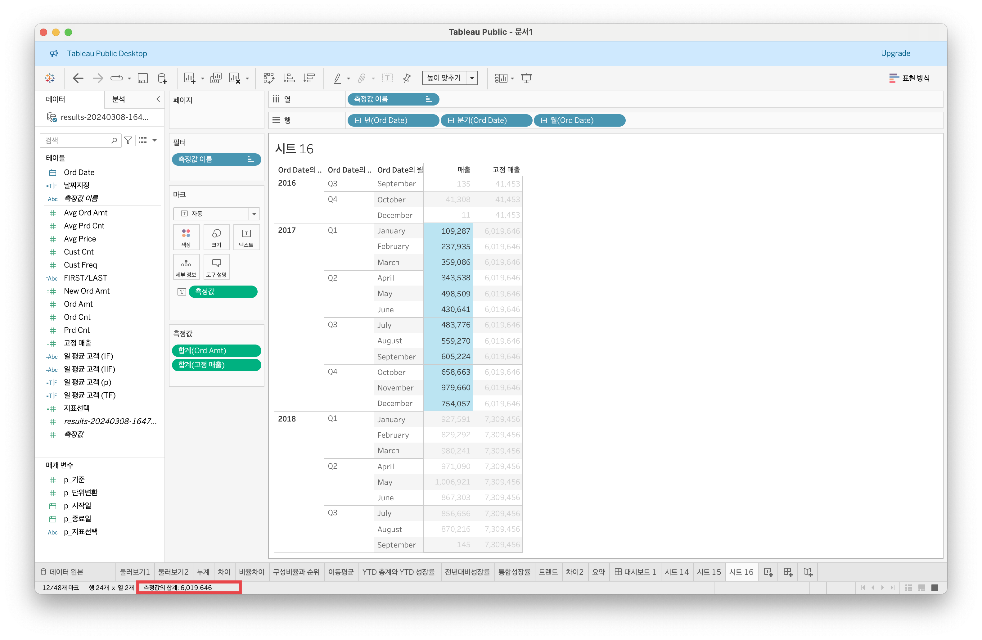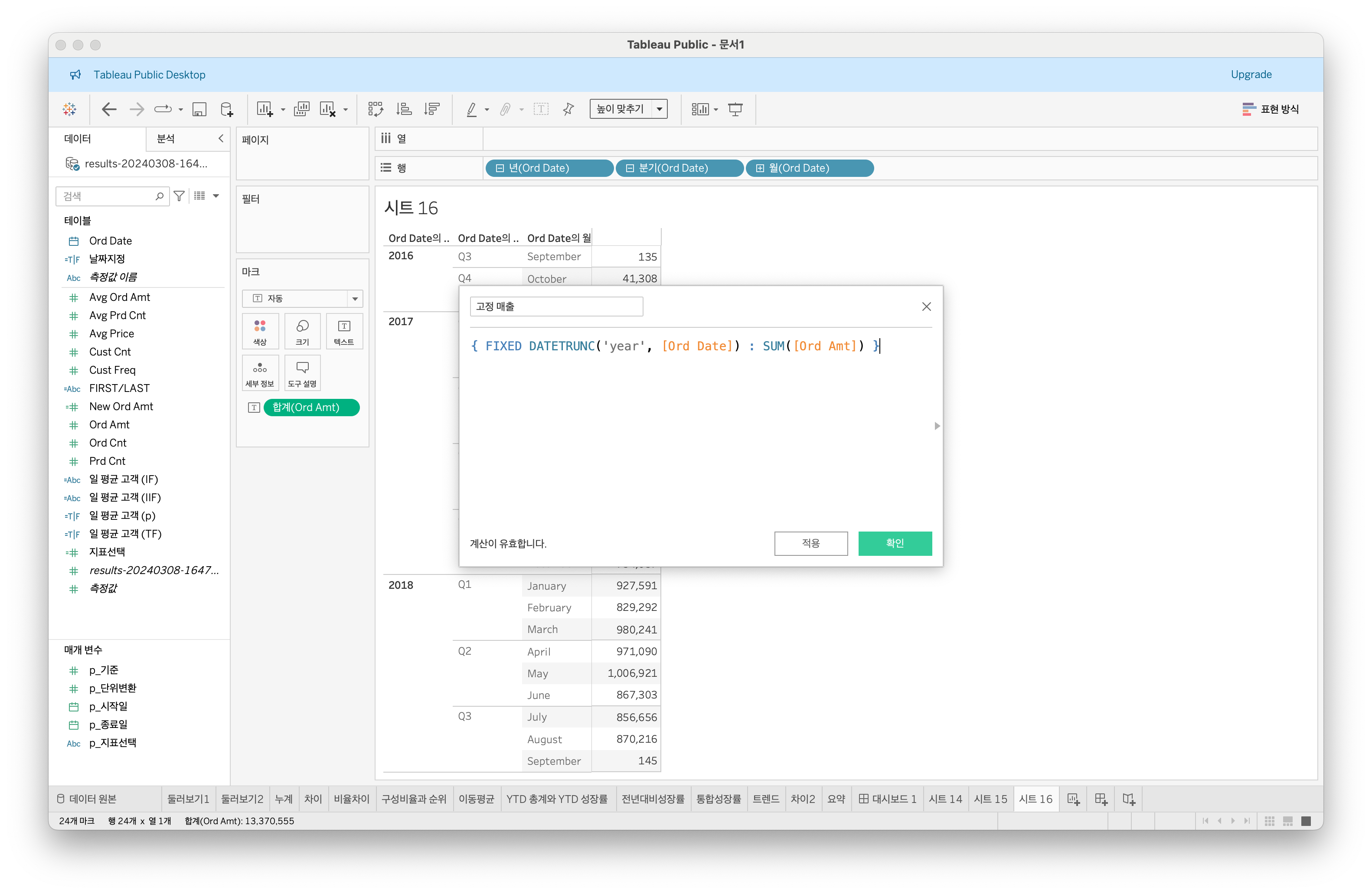4) 데이터 패널에서 'Ord Amt' 필드 더블클릭