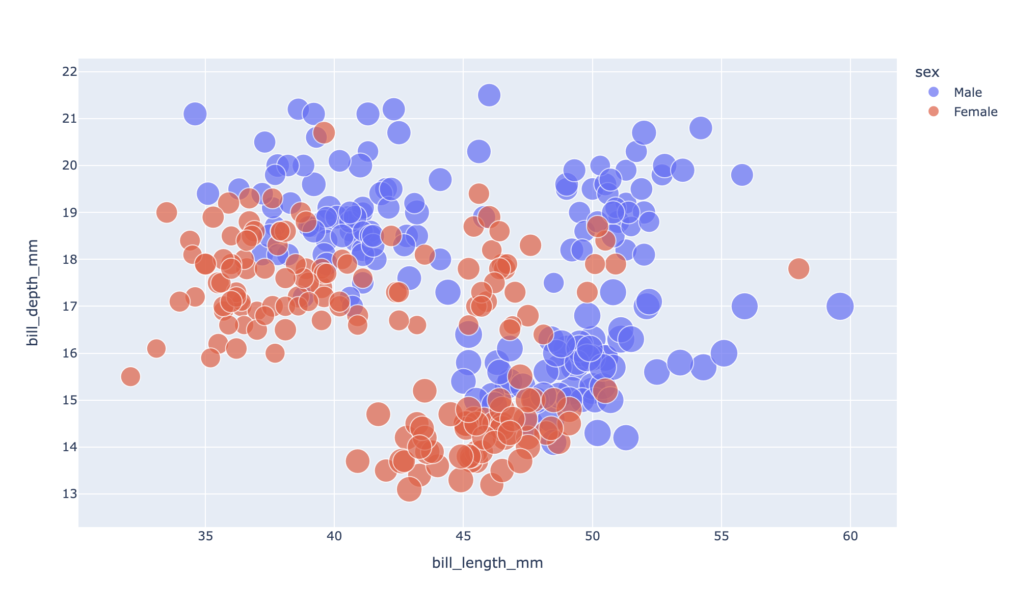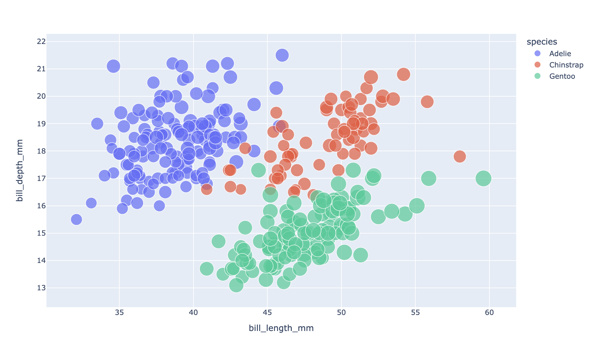 fig = px.scatter(df.dropna(), x=numerical_columns[0], y=numerical_columns[1], color='species', size=numerical_columns[3])