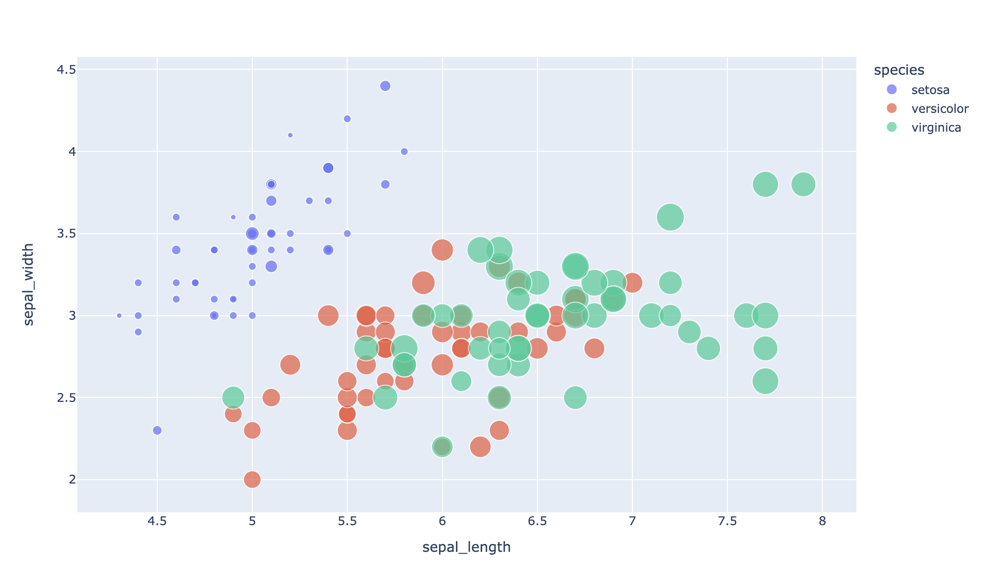 plotly.express.scatter(data_frame=None, x=None, y=None, color=None, size=None)