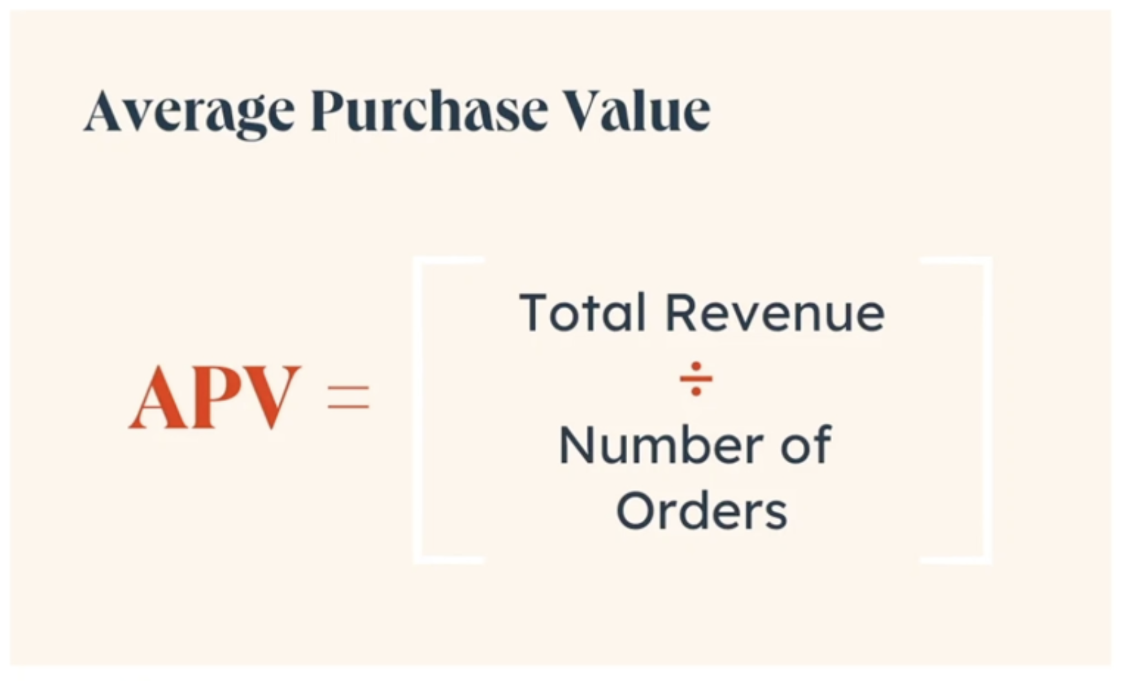 APV = 총 주문 금액 (Total Revenue) / 총 주문 횟수 (Number of Orders)