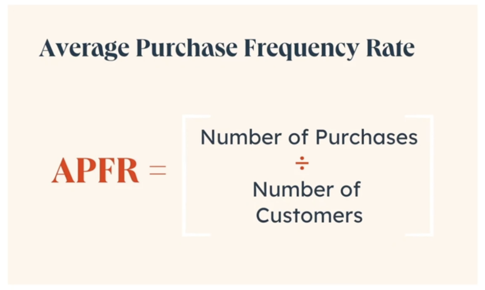 평균 구매 빈도율 (APFR) = 총 구매 횟수 (Number of Purchases) / 전체 고객 수 (Number of Customers)