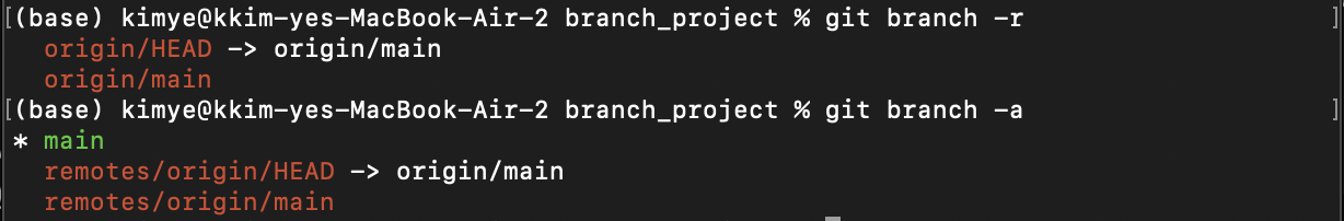 Branch는 local과 remote가 별도로 관리를 한다. 따라서 local에만 만들어 놓고 쓸수가 있고, 내가 만들어서 쓰던 branch를 remote에 공유해줄수도 있다. 그래서 local의 branch 상태와 remote의 branch 상태가 달라질 수 있다.