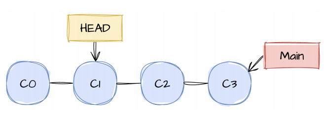만약 C1인 특정 commit ID를 지정하여 checkout을 실행하면 HEAD가 해당 commit을 가리키게 된다.