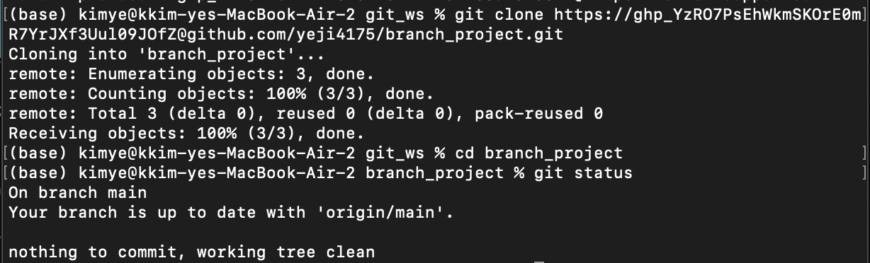 git_ws % git clone https://github.com/yeji4175/branch_project.git