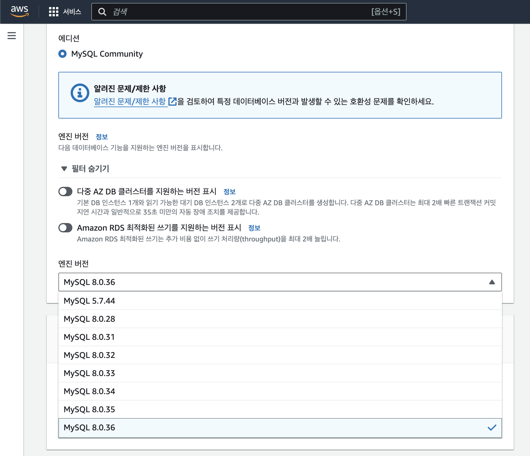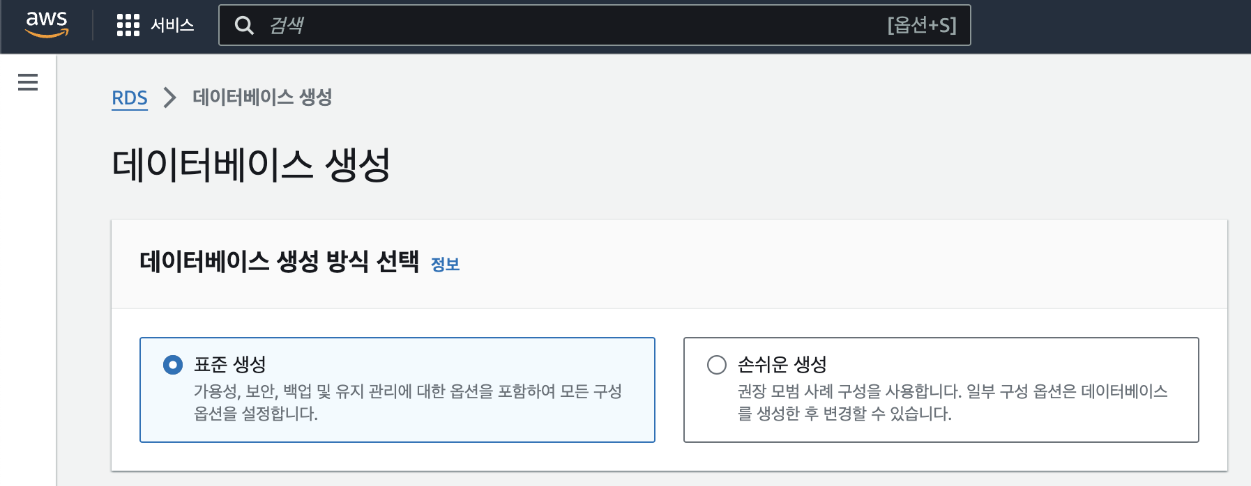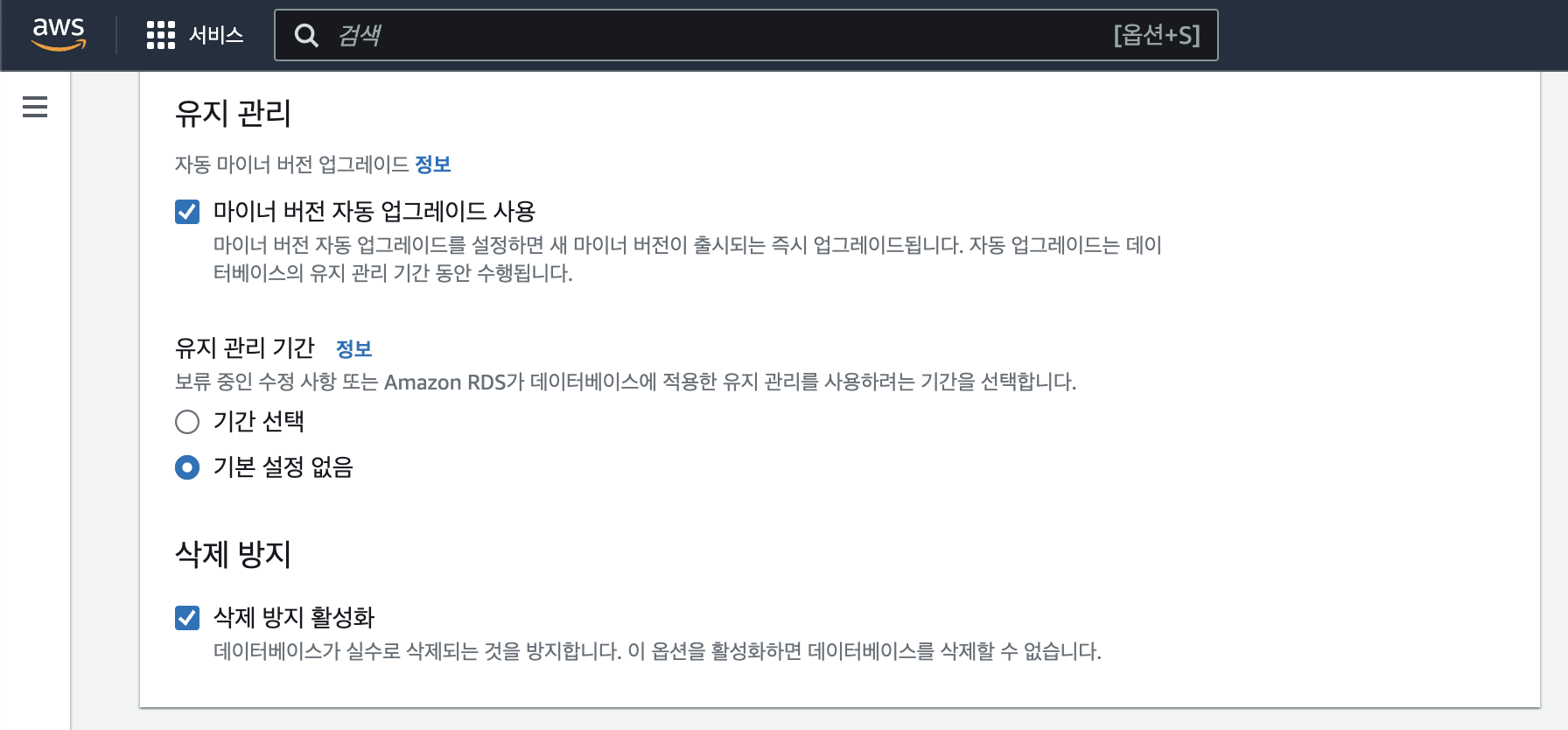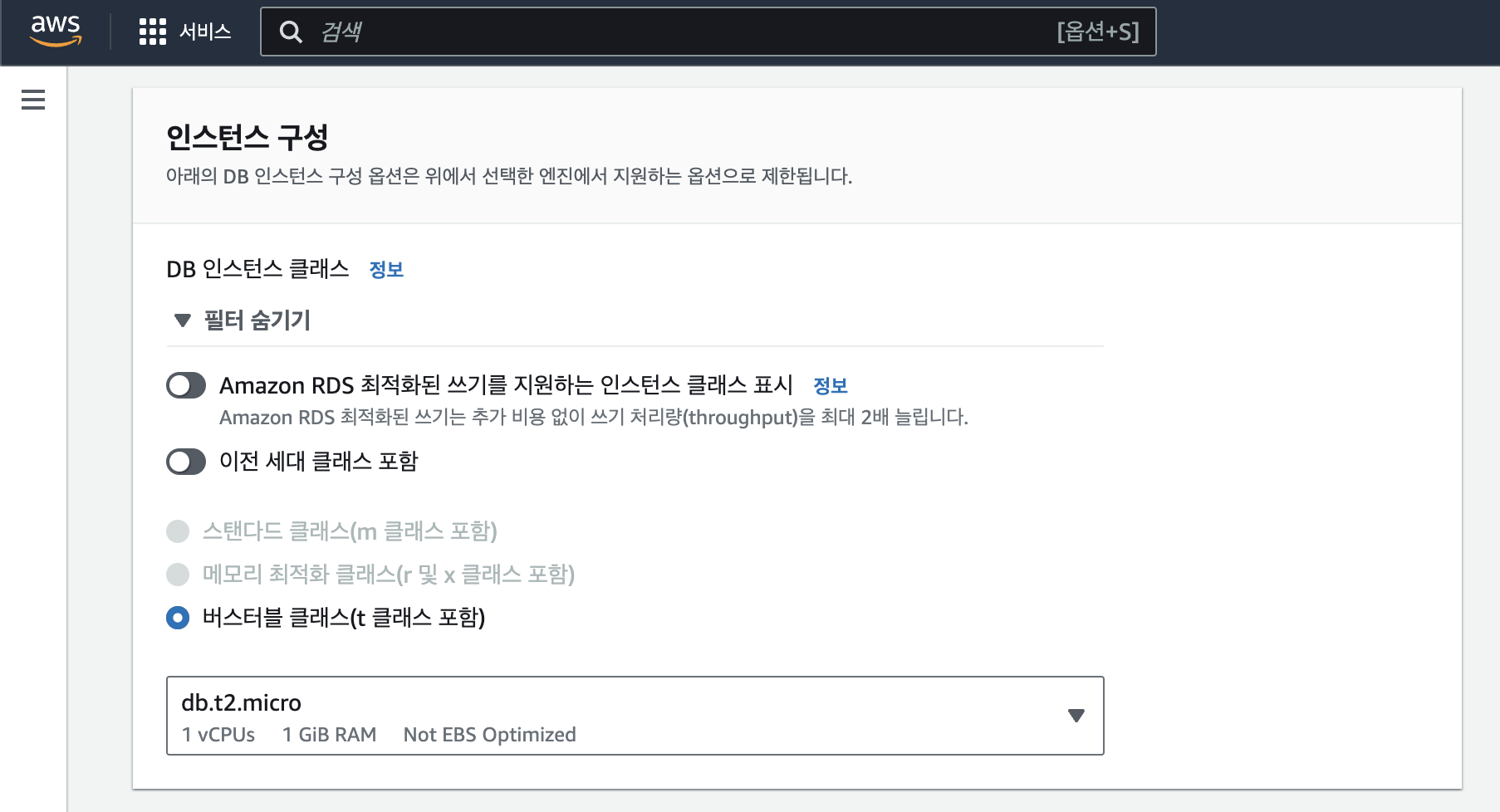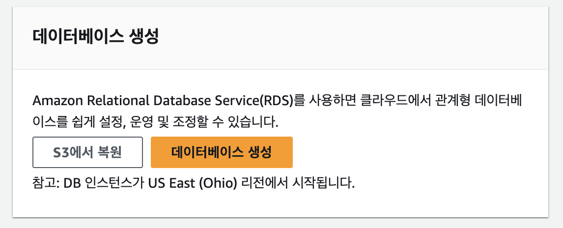 1) AWS 관리 콘솔 홈 > 서비스 > RDS > 데이터베이스
