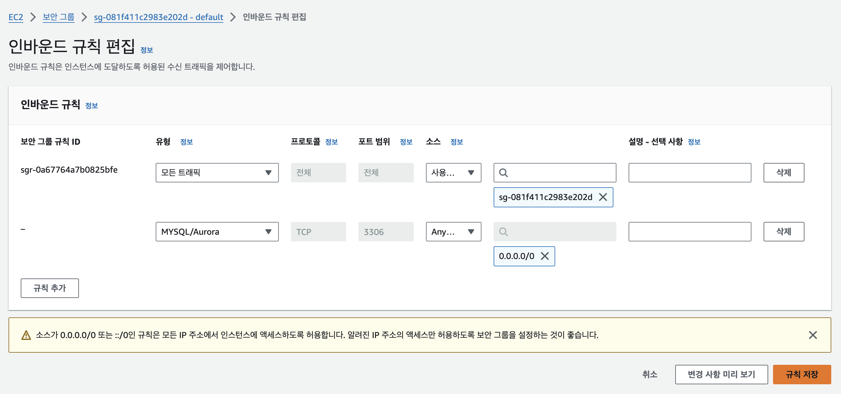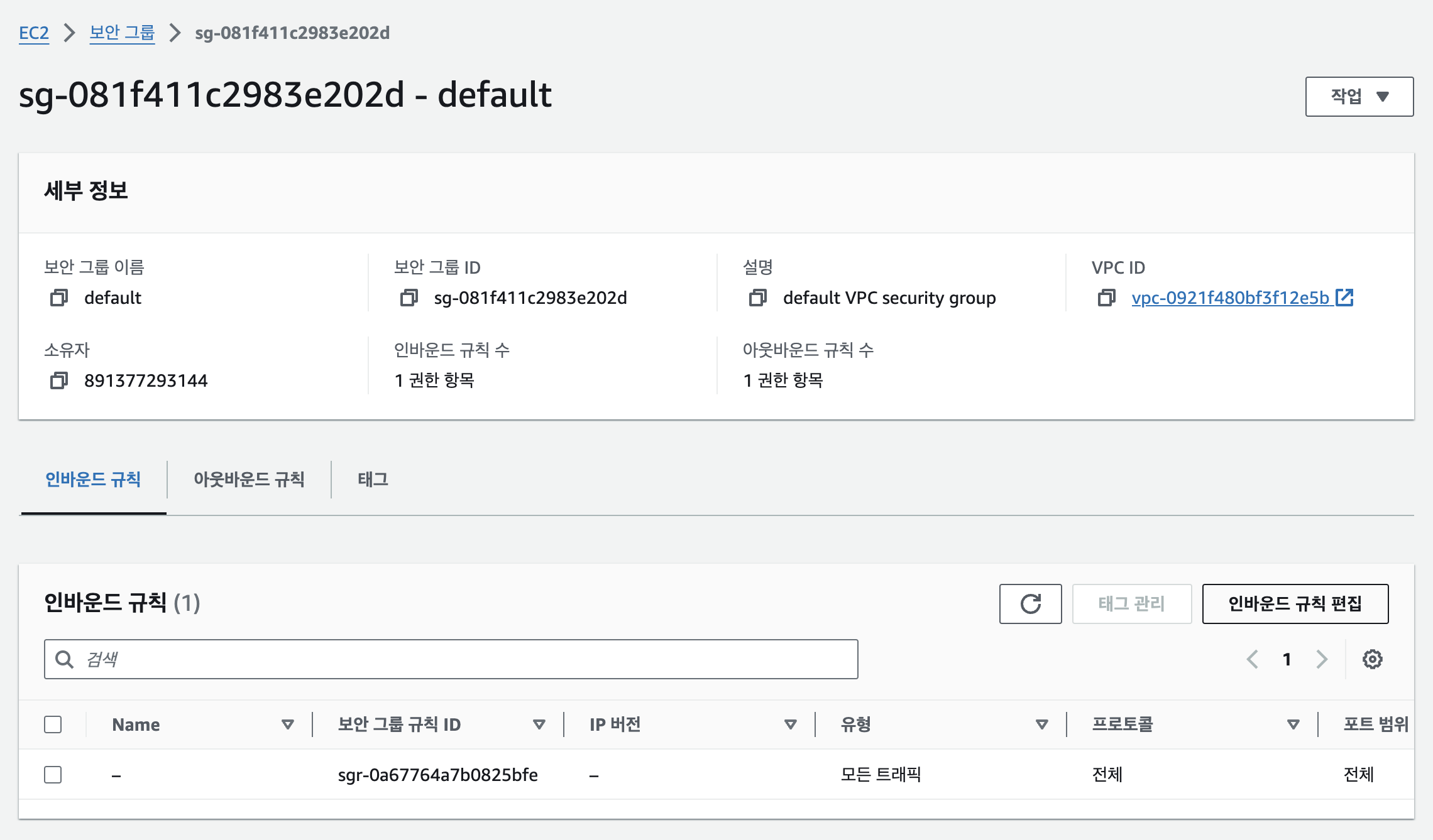 5) 세부 정보 아래 인바운드 규칙에서 인바운드 규칙 편집