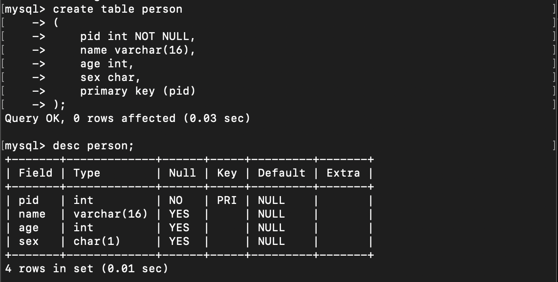 pid int NOT NULL, #pid는 person ID의 줄임말+