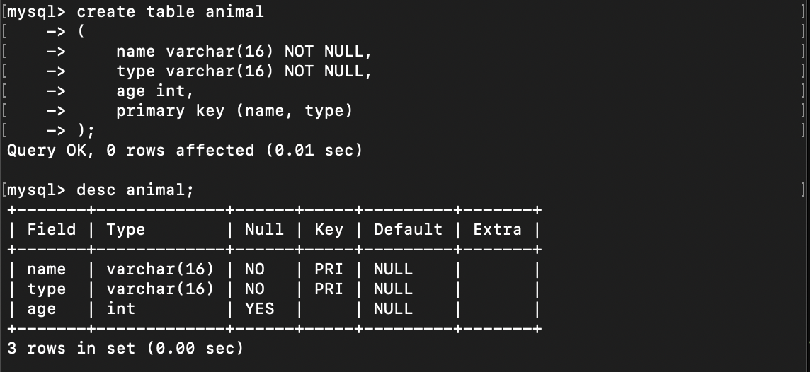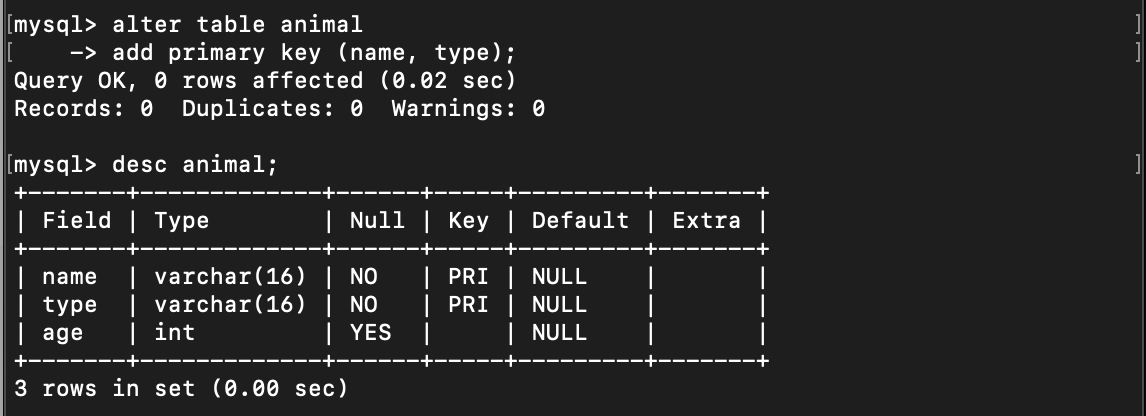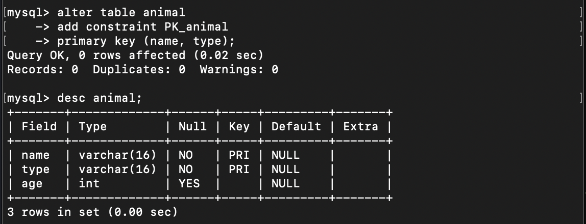 constraint PK_animal을 생략해도 위와 같이 똑같은 결과값이 나온다.