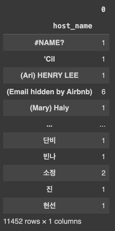 # 'host_name'을 기준으로 데이터프레임을 그룹화한 후, 각 그룹의 크기를 계산하여 반환