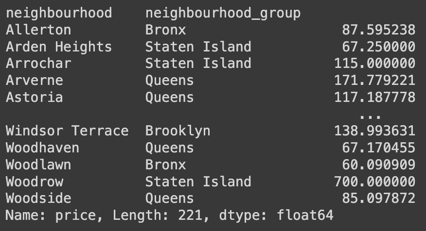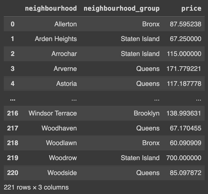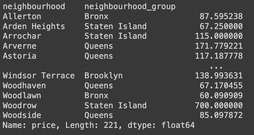Ans = df.groupby(['neighbourhood','neighbourhood_group'],as_index=False).price.mean()