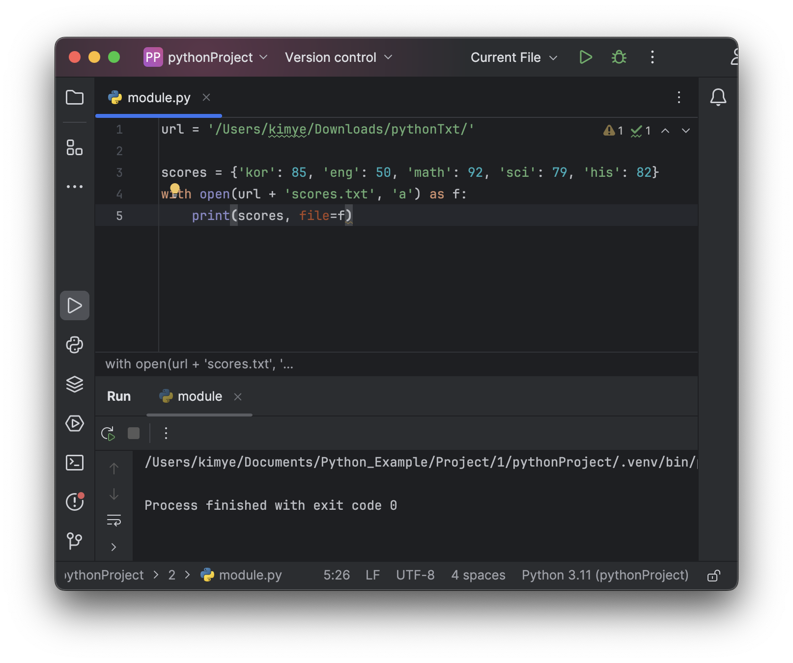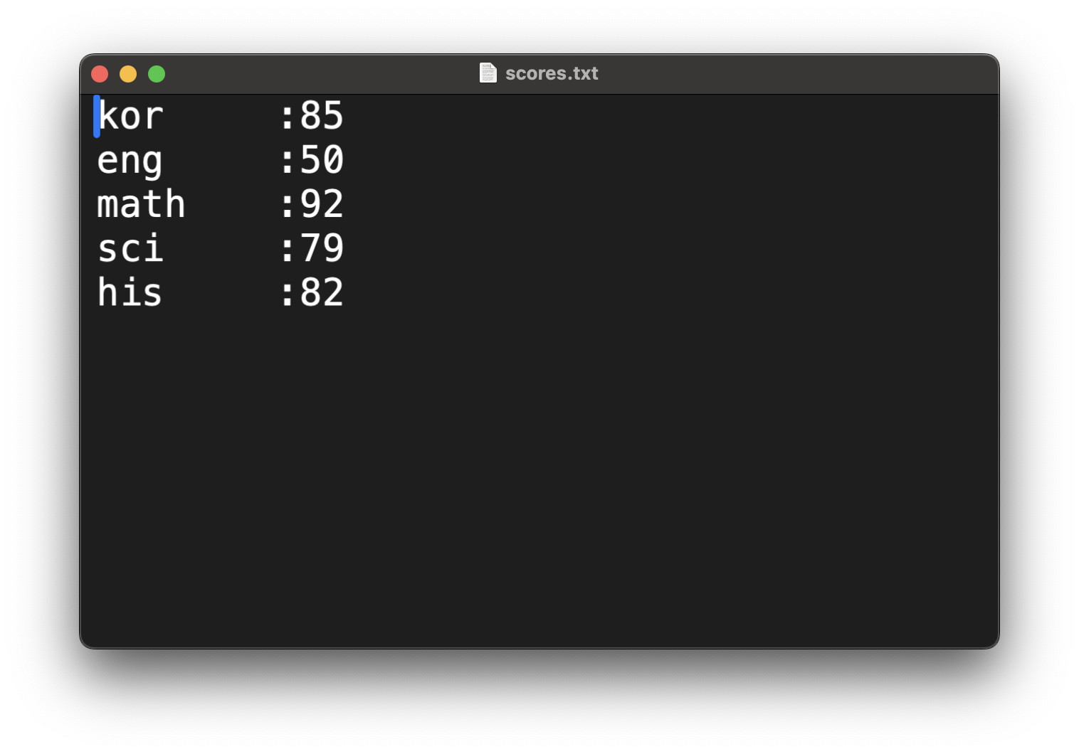 Example: dictionary에 저장된 과목별 점수를 파일에 저장하는 코드 작성하기