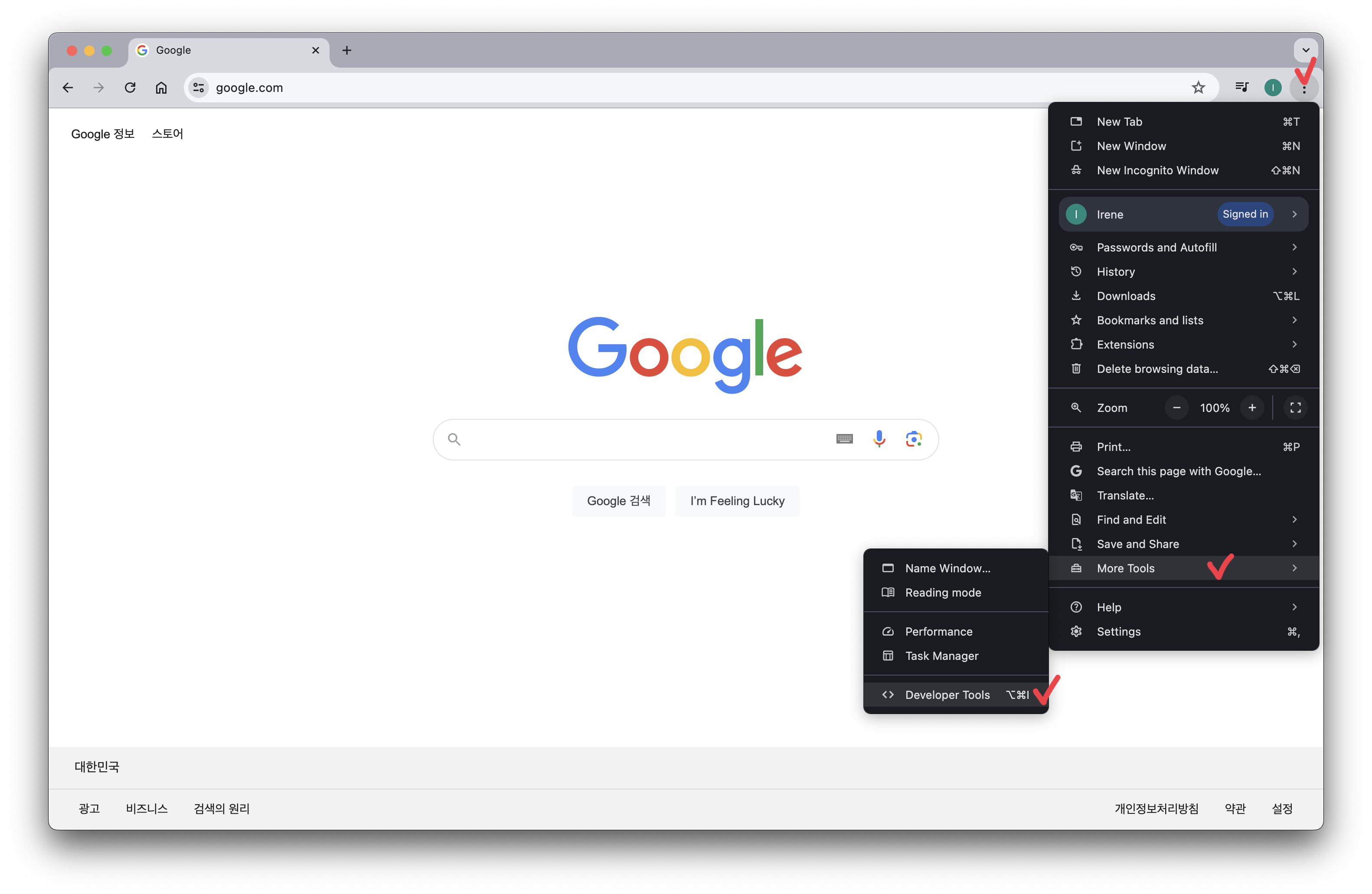 1) 웹 브라우저에서 오른쪽 상단의 점 3개 버튼 클릭