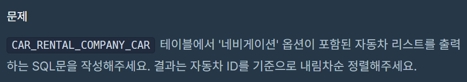 문제 1: 특정 옵션이 포함된 자동차 리스트 구하기
