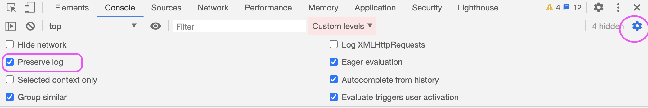 Custom levels에서 Warnings을 체크 해제해 주세요.