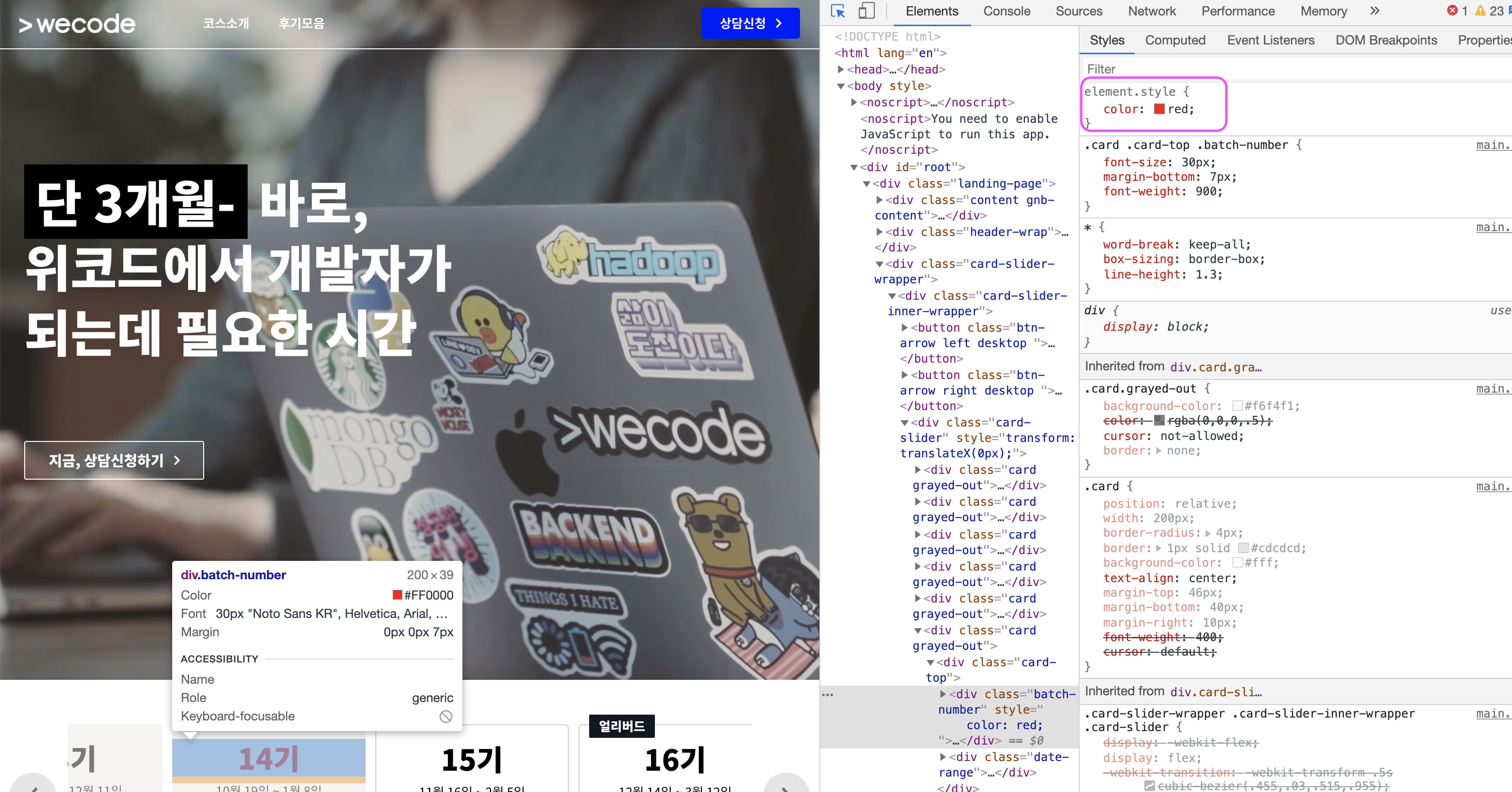 ⭐️ Elements Tab > Styles 부분의 순서가 의미하는 것은? ⭐️