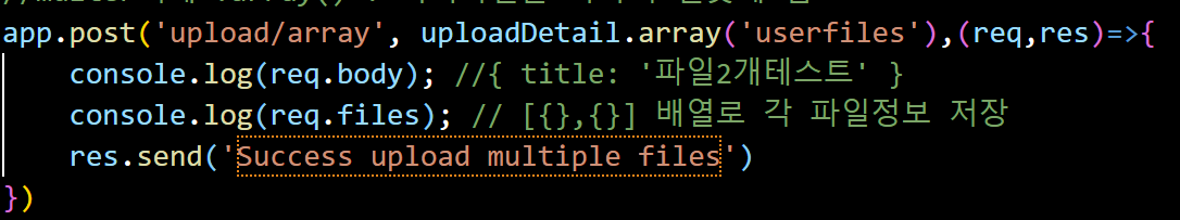 console.log(req.files); // [{},{}] 배열로 각 파일정보 저장
