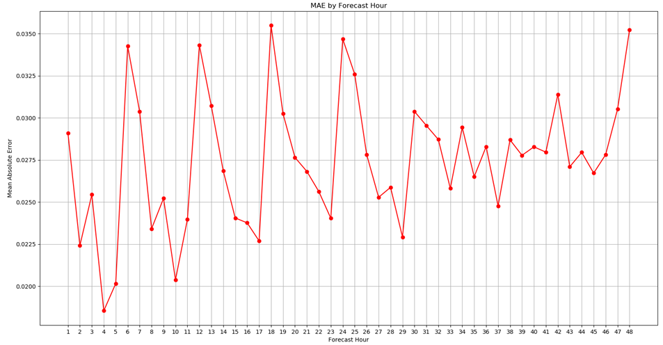 영암 지역 LDPS 초기장 시간별로 MAE: