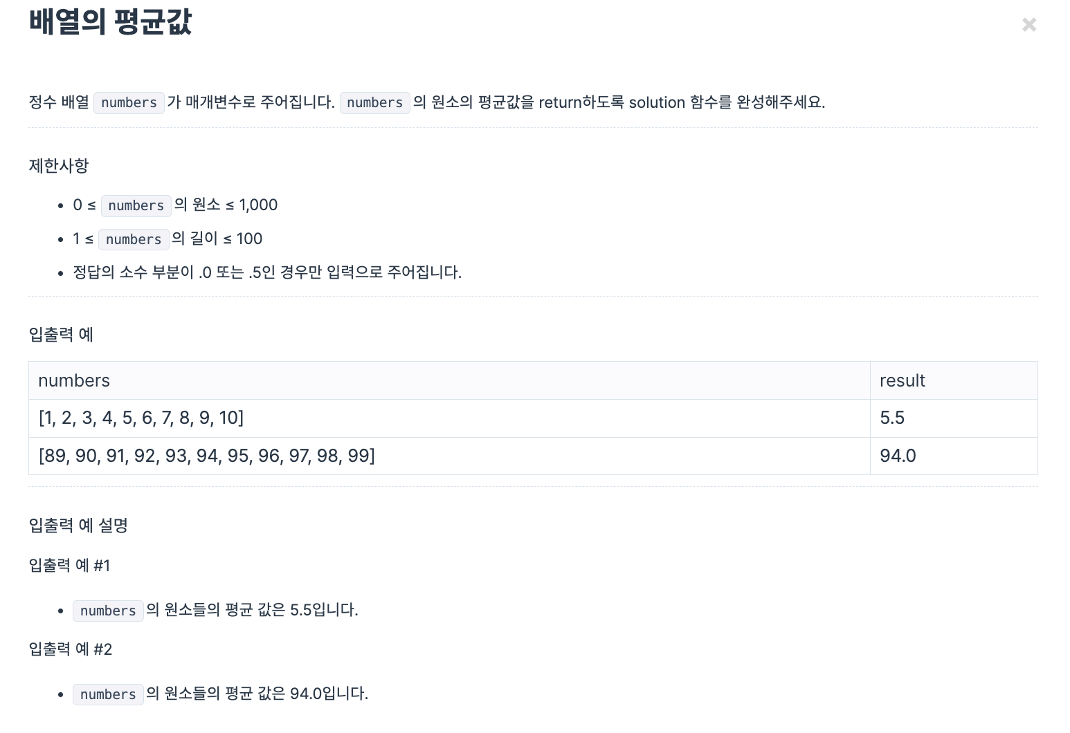 function solution(numbers) { var answer = numbers.reduce((a,b) => a+b, 0) / numbers.length; return answer; }사용된 메서드와 개념