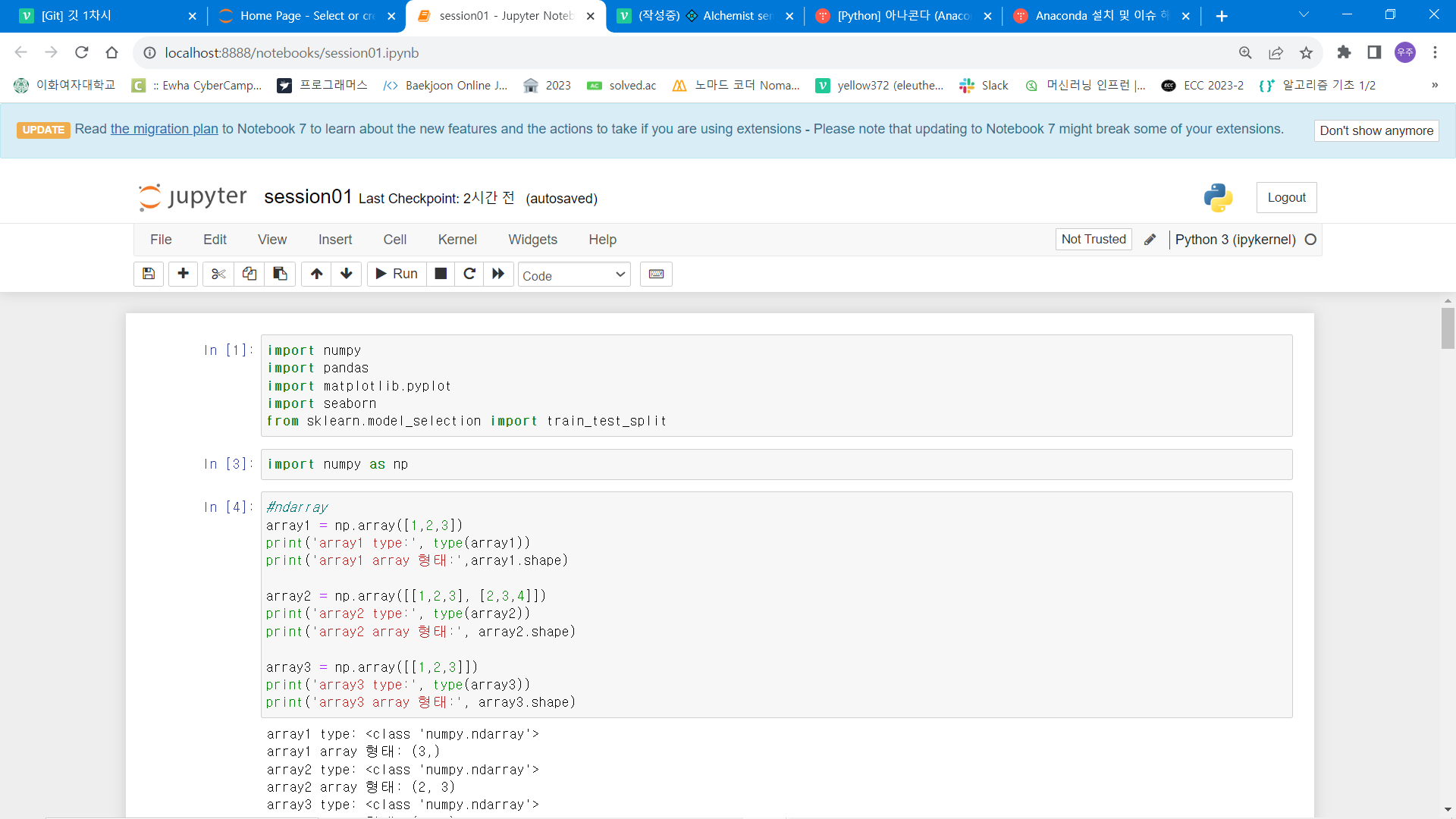 Anaconda ์ค์น ํ ์ค์น ํ์ผ์ jupyter notebook์ด ์์ต๋๋ค. ๊ฑฐ๊ธฐ์ ์ฝ๋ ์คํ ํ ์ ๋๋ฉด ์ฑ๊ณต!