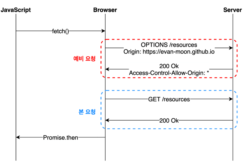 즉, 예비 요청의 역할은 본 요청을 보내기 전에 브라우저 스스로 안전한 요청인지 미리 확인하는 것이다.