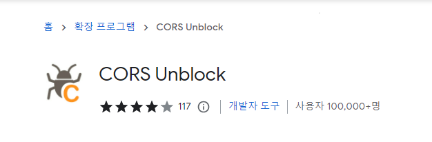 처음에 CORS 에러가 생겼을때 cors unblock 확장 프로그램으로 우선 개발을 한 뒤에 cors 에러를 마지막으로 해결했다. cors 에러로 머리가 아플때는 개발 시점에서는 사용해도 좋다고 생각한다.
