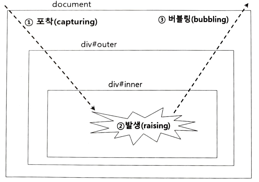 ->클릭 이벤트를 발생 시켰을 때 누가 처리 ? document, div#outer, div#inner 셋 모두의 영역임