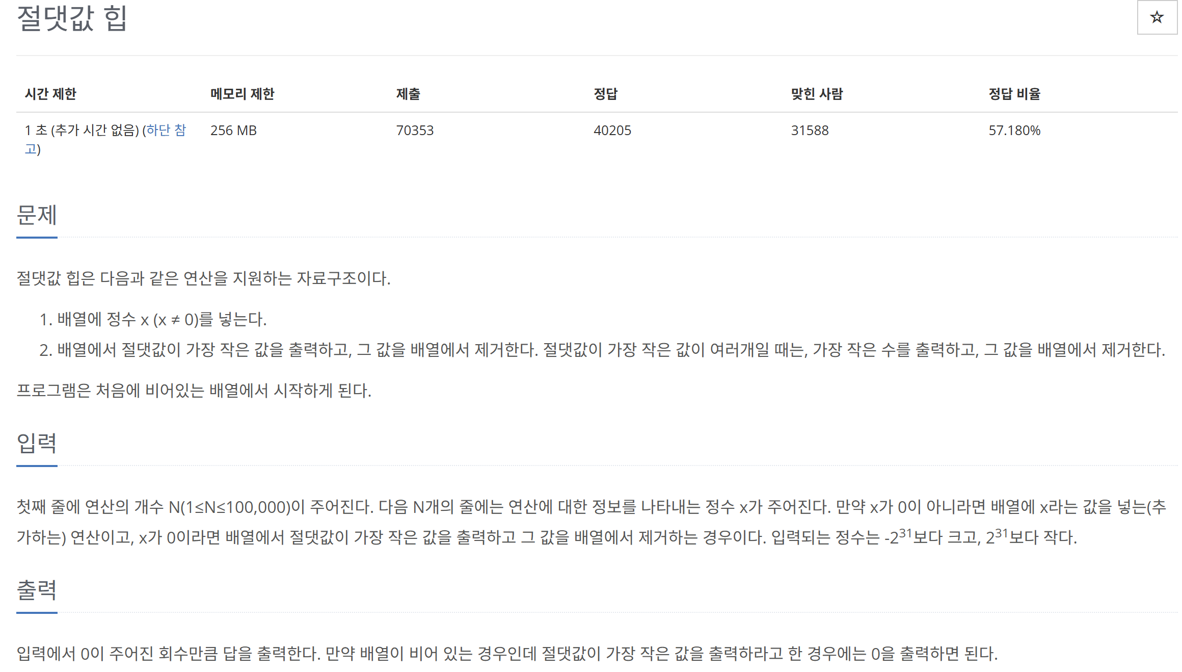 절댓값 힙을 구현하는 문제!