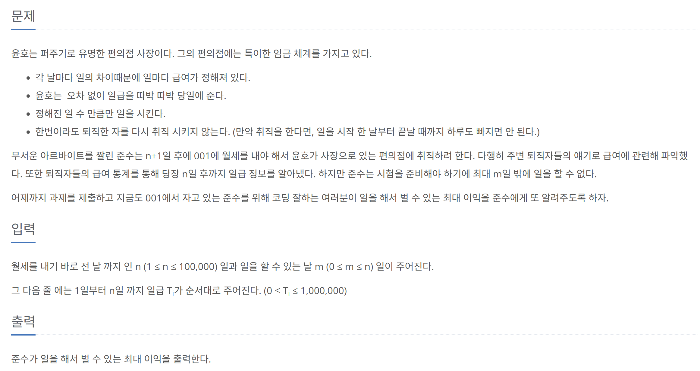 날 마다 받는 일급이 달라 가장 많은 돈을 벌 수 있는 날들을 찾는 문제