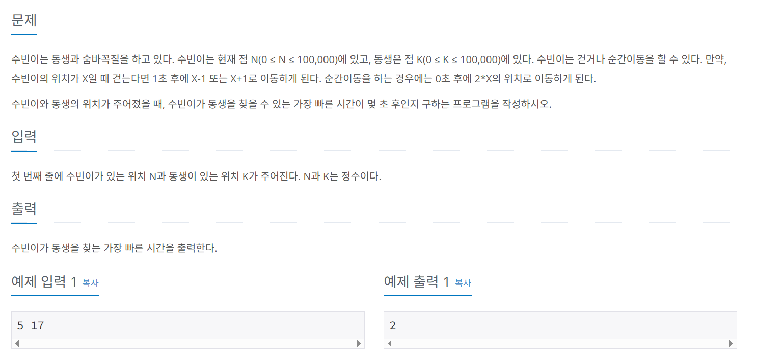 수빈이가 동생의 위치를 찾을 수 있는 가장 빠른 시간을 찾는 문제