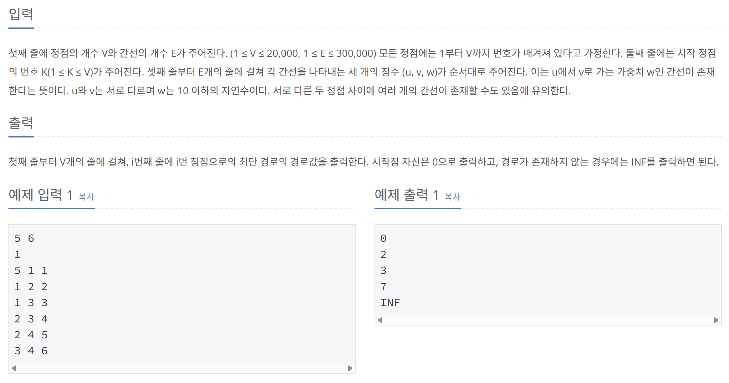 방향 그래프에서 한 정점에서 다른 모든 정점으로의 최단 경로를 구하는 문제